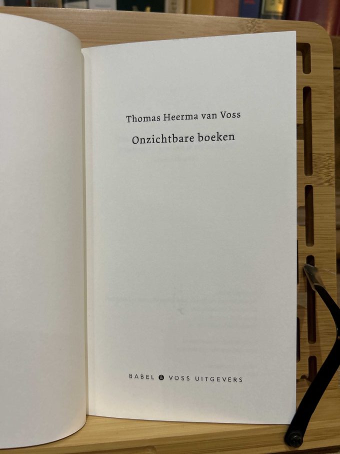 Onzichtbare boeken is een boek van Thomas Heerma van Voss, gepubliceerd door Babel & Voss Uitgevers in 2015. Deze uitgave, de tweede editie, heeft 44 pagina’s en is uitgevoerd in een softcover met perfecte binding, in mint conditie.