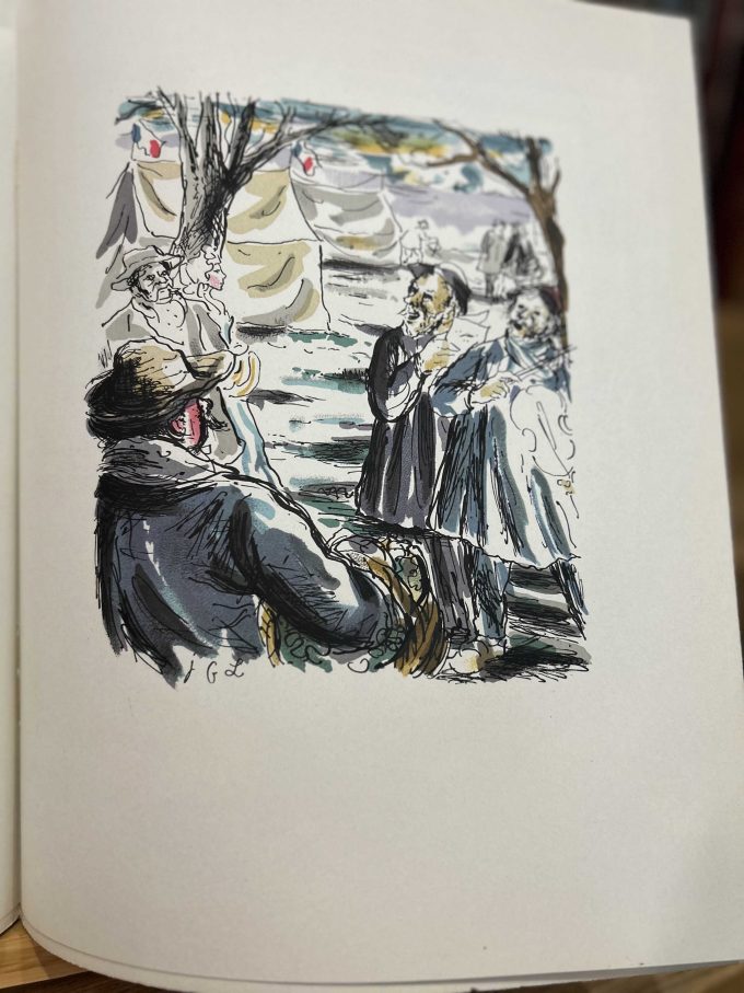 Henri Forestier, Roger Tisserand, and Paul Cazin were French writers passionate about preserving local traditions and regional history. Each had a deep connection to Burgundy, a region rich in history and culture. Forestier was particularly known for his work on local traditions and legends, while Tisserand focused on history and folklore. Paul Cazin, a writer and translator, brought a unique literary perspective, enriching the text with his deep knowledge of literature and culture. Their collaboration in Veillées de Bourgogne reflects their shared commitment to preserving and celebrating the cultural heritage of their native region. Jacques Grange, the illustrator, was a renowned artist known for his ability to capture the spirit of the texts he illustrated, and his lithographs for this book add undeniable artistic value, harmonizing with the stories.