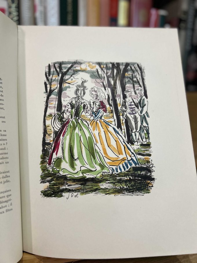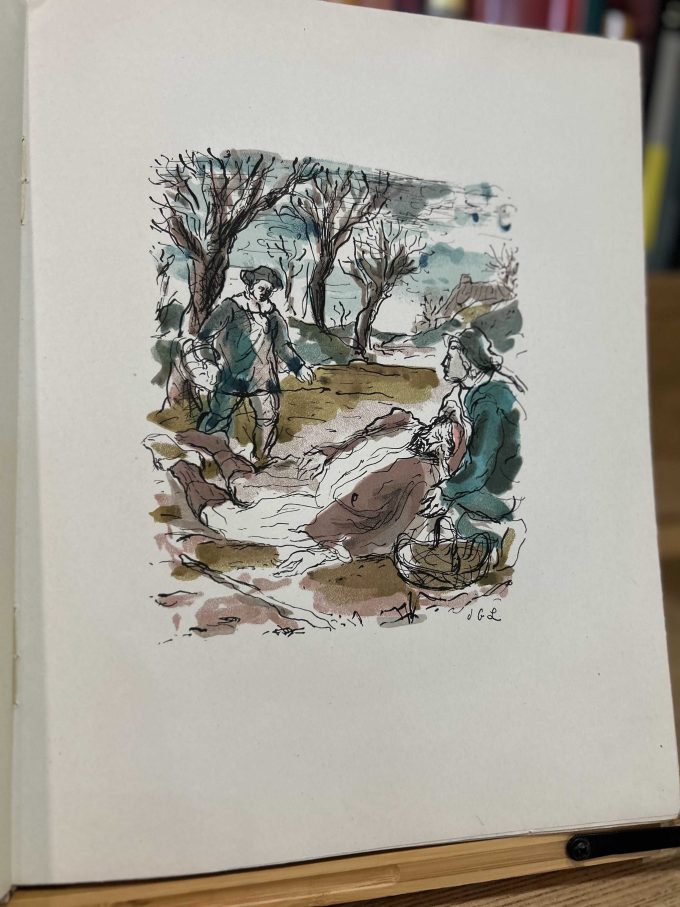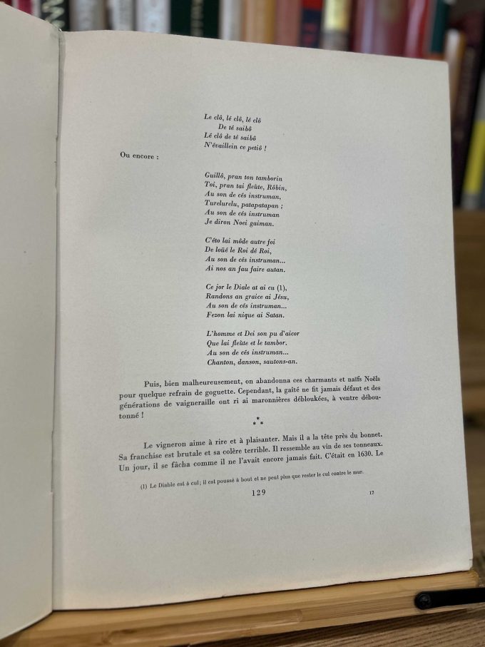 Veillées de Bourgogne, authored by Henri Forestier, Roger Tisserand, and Paul Cazin, and published in 1945 in Dijon by Michel Jeanniard, is a literary work that pays tribute to the traditions, legends, and folk tales of the Burgundy region. This book is a collection of stories that encapsulate the essence of Burgundian life through “veillées,” the traditional evening gatherings where locals would share tales, memories, and cultural practices. The authors, all deeply connected to Burgundian culture, aimed to preserve these oral traditions by transcribing them and enhancing them with a refined literary style. The 26 color lithographs by Jacques Grange complement the texts, adding a vibrant visual dimension that enhances the nostalgic and warm atmosphere of the work. This book is particularly valuable for those interested in French regional culture, providing an intimate glimpse into the customs and beliefs of Burgundy through a rich and diverse collection of folk stories.