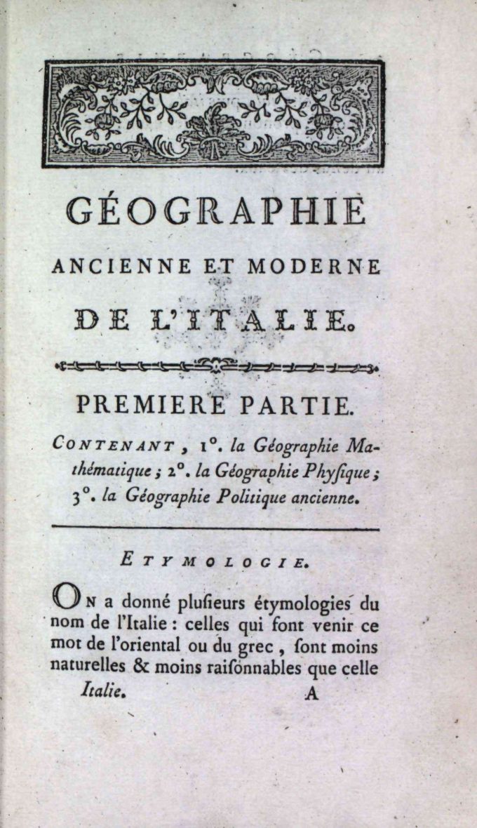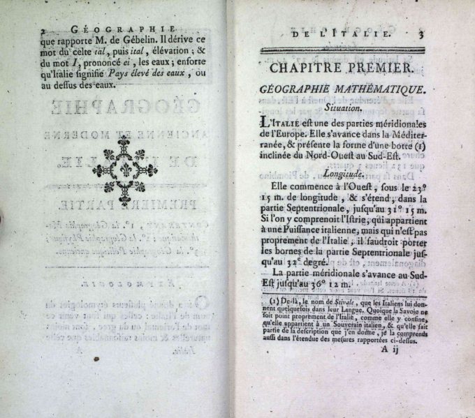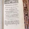 Géographie Comparée – Italie Ancienne. Ou Analyse De La Géographie Ancienne Et Moderne Des Peuples De Tous Les Pays Et De Tous Les Ages by M. Mentelle, published in 1785 by L’Auteur – Nyon l’ainé – Nyon le jeune in Paris, consists of 352 pages. This volume is in good condition with a quarter leather and paper binding, and an ex-libris on the front page: Ex Bibliotheca Armandi de Behault.