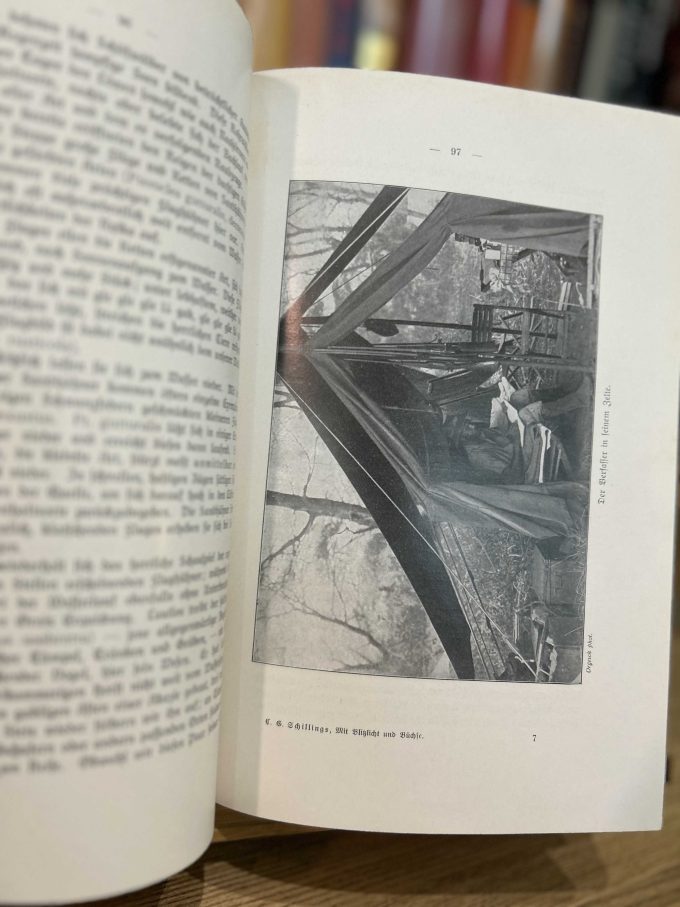 Mit Blitzlicht und Büchse. Neue Beobachtungen und Erlebnisse in der Wildnis inmitten der Tierwelt von Äquatorial-Ostafrika, geschreven door Carl Georg Schillings in 1905, is een baanbrekend werk dat de diepten van de fauna van Oost-Afrika verkent. Schillings, een pionier in het gebruik van flitsfotografie, revolutioneerde de natuurwaarneming door ongekende beelden van dieren in hun natuurlijke habitat vast te leggen, vooral ‘s nachts. Zijn boek combineert op meesterlijke wijze avonturenverhalen met wetenschappelijke documentatie, en biedt een fascinerend inzicht in de diversiteit van diersoorten die hij tegenkomt, waaronder leeuwen, olifanten en neushoorns. Schillings beschrijft ook de Afrikaanse landschappen, de inherente gevaren van de jacht en verkenning, en de interacties met lokale bevolkingen. Schillings’ tekst is niet alleen een getuigenis van zijn tijd, maar ook een vroege oproep tot natuurbehoud, waarbij hij zijn lezers bewust maakt van de impact van jacht en kolonisatie. Het succes van dit werk heeft een blijvende stempel gedrukt op de geschiedenis van de exploratieliteratuur en natuurfotografie, en vestigde Schillings als een sleutelfiguur in deze velden.
