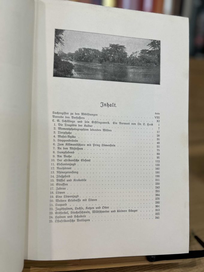 Carl Georg Schillings, geboren 1865 in Münster, Deutschland, war ein renommierter Entdecker, Fotograf und Naturforscher, der vor allem für seine Expeditionen nach Ostafrika zu Beginn des 20. Jahrhunderts bekannt ist. Nach seinem Jurastudium entwickelte Schillings eine Leidenschaft für Entdeckungen und Jagd, die ihn zu mehreren Expeditionen in Afrika führte. Seine Beiträge sind besonders bemerkenswert, da er die Blitzfotografie in die Tierbeobachtung einführte, eine Innovation, die ihm ermöglichte, nächtliche Aufnahmen von Tieren zu machen—eine damals beispiellose Leistung. Seine Werke, darunter Mit Blitzlicht und Büchse, lieferten nicht nur wertvolle Einblicke in die afrikanische Tierwelt, sondern beeinflussten auch den Naturschutz. Schillings spielte eine entscheidende Rolle dabei, das Bewusstsein der europäischen Öffentlichkeit für den natürlichen Reichtum Afrikas und die Notwendigkeit, diesen zu bewahren, zu schärfen, lange bevor der Naturschutz zu einem zentralen Anliegen wurde.