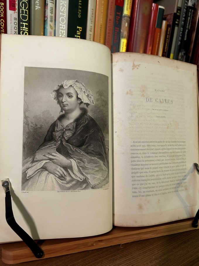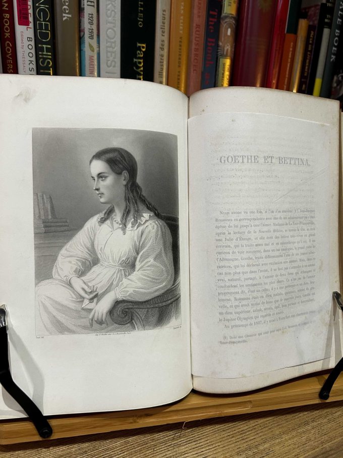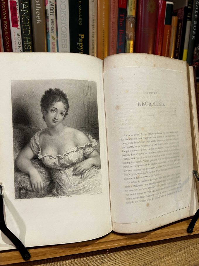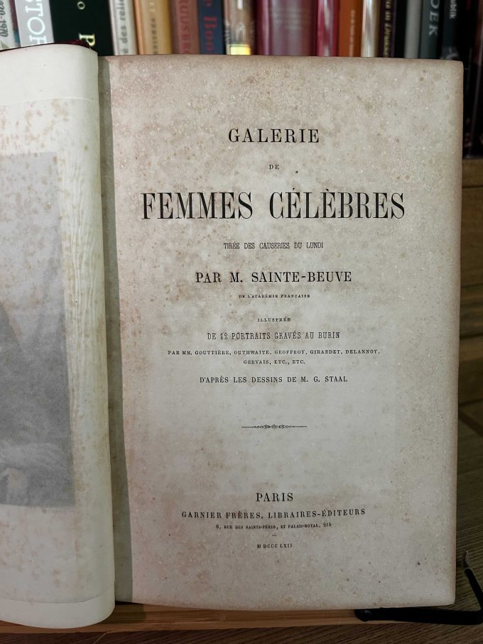 Sainte-Beuve, M.. Galerie de femmes célèbres. tirées des causeries du lundi. Paris: Garnier Frères, 1862. 406 pages. [8], 394, [4] pp. 1 Volume. [First Edition]. Gilt edges. 27,5 cm. x 19 cm. In-8. Full faux leather hardcover. Sewn binding. Illustrations: Some black and white portraits under a caption, including one as a frontispiece. Condition: Fine.