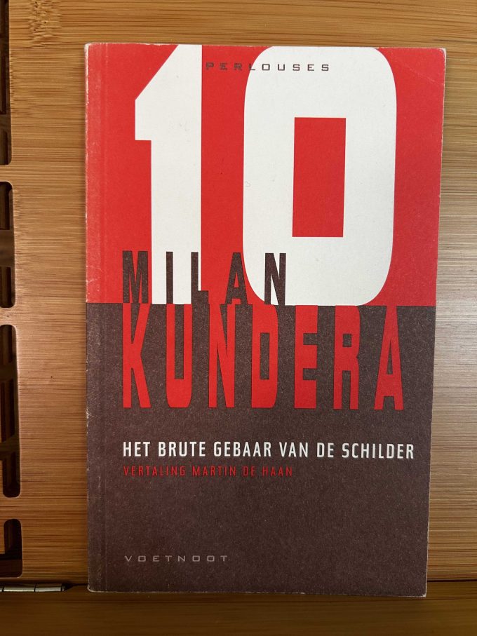 Het brute gebaar van de schilder est la traduction néerlandaise de Le geste brutal du peintre, un récit de Milan Kundera, traduit par Martin de Haan. Publié en 2006 par Voetnoot à Anvers, ce livre fait partie de la série “Perlouses” et constitue le dixième numéro de cette collection. Avec 36 pages, ce volume compact de 16,5 cm sur 10,5 cm présente une couverture souple en parfait état, offrant une fenêtre intime sur l’œuvre de Kundera.