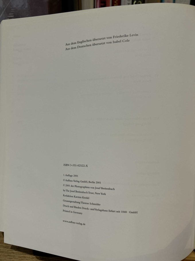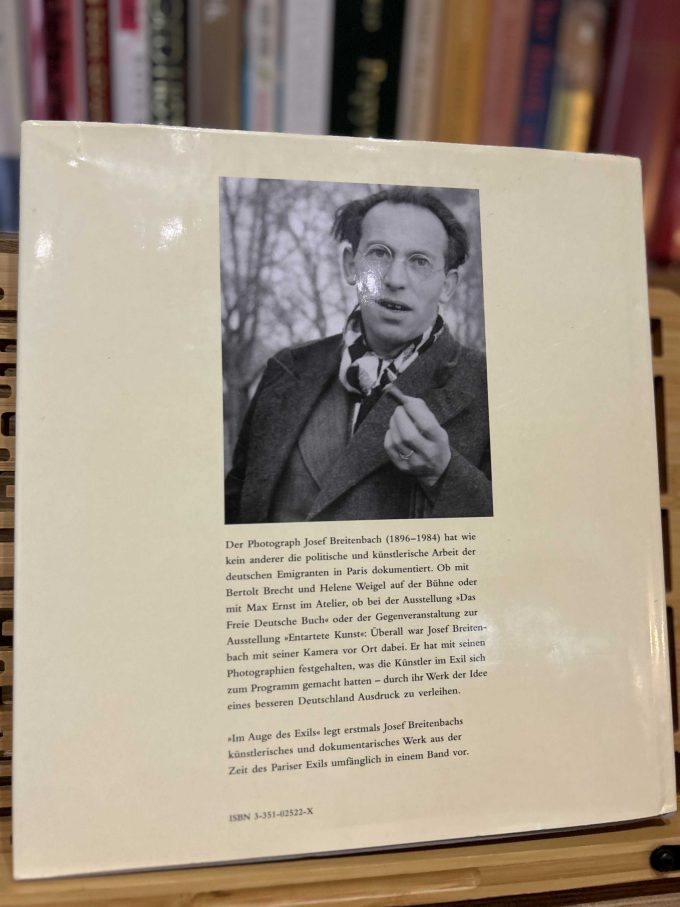 Holz, Keith – Schopf, Wolfgang. [Translated by Levin, Friederike]. Im Auge des Exils. Josef Breitenbach und die Freie Deutsche Kultur in Paris 1933-1941. Berlin: Aufbau-Verlag, 2001. 252 pages. 1 Volume. [First Edition]. Hardcover with dust jacket. Sewn binding. Condition: Fine.