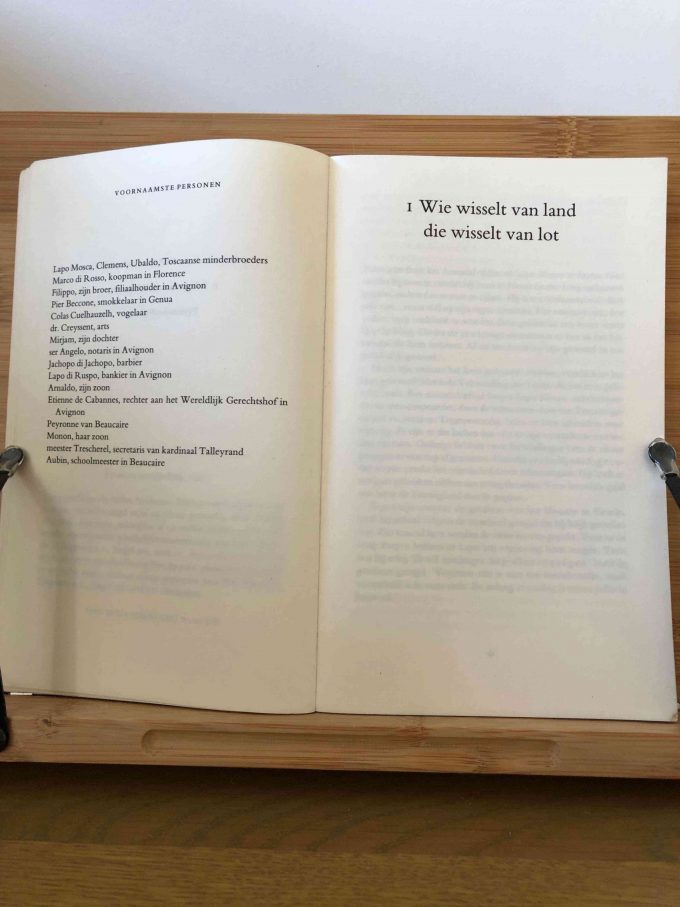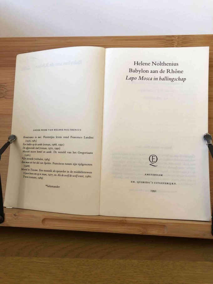 Nieuwe avonturen van Lapo Mosca, de franciscaan-detective die men eerder aan het werk heeft kunnen zien in het middeleeuwse Florence. Ditmaal wordt hij met een drievoudige opdracht uitgestuurd naar het Zuidfranse Avignon, waar in die tijd (1362) de pausen resideren en een krankzinnig ingewikkelde situatie is ontstaan tussen staat en kerk. Heel de sfeer is meesterlijk getroffen, vastgelegd met zeer grote kennis van zaken en met een voortreffelijke pen. Bij alle ellende wordt de humor toch niet vergeten, en er zijn ook weer speelse vertalingen van alleraardigste liedjes. Een vergelijking met de sympathieke middeleeuwse benedictijn-speurder van Ellis Peters valt toch duidelijk uit in het voordeel van de veel minder brave Lapo Mosca, vooral omdat Hélène Nolthenius zonder enige twijfel de grootste schrijfster is van de twee. Een boek met de nodige spanning, waarin tegelijk een boeiend beeld wordt opgeroepen van het doodgewone dagelijks leven in een zeer verwarde tijd.