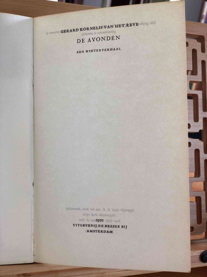 De avonden. Een winterverhaal (The Evenings: A Winter Story) (1970) by Gerard Kornelis van het Reve is an iconic novel regarded as one of the most important works in Dutch literature. This 19th edition, published by Uitgeverij De Bezige Bij, comprises 196 pages and is presented in a softcover. The novel provides a poignant portrait of the monotony and meaninglessness that characterized post-war Netherlands and has had a lasting impact on generations of readers through its powerful depiction of the human condition in a time of existential emptiness.