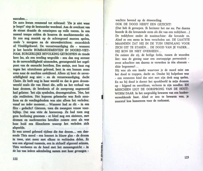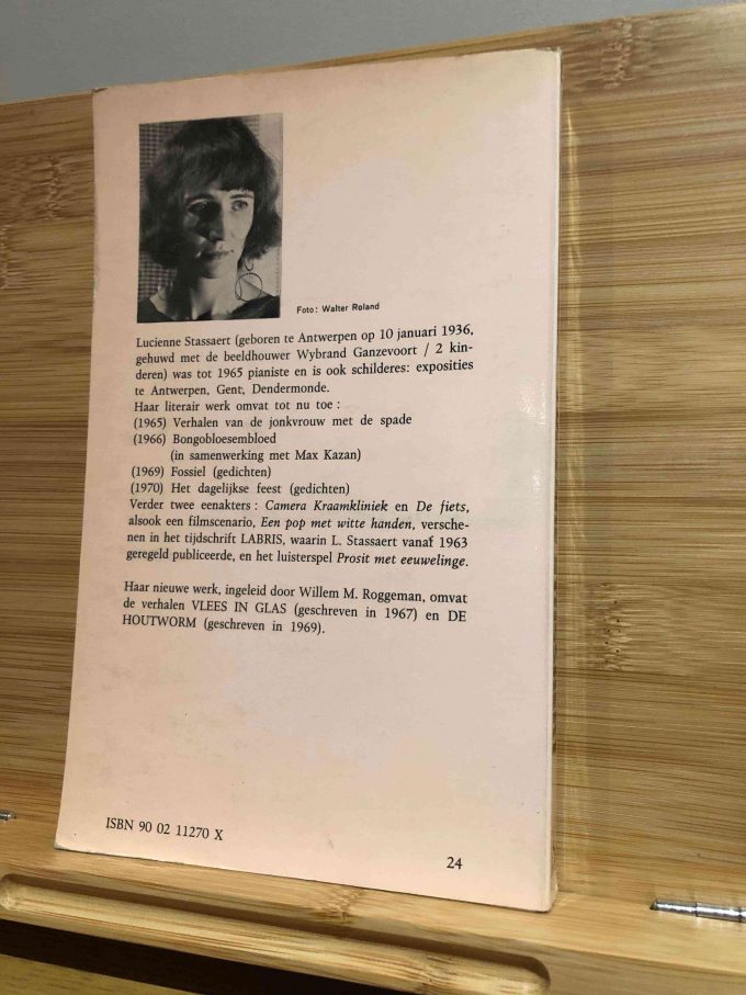 The book includes the stories “Vlees in glas” (Flesh in Glass) written in 1967, and “De houtworm” (The Woodworm) written in 1969. In these stories, Stassaert explores themes of decay, destruction, and the fragility of life. “Vlees in glas” provides a profound look into the fragility of human existence, while “De houtworm” examines the unseen but devastating forces that can affect both material and emotional structures. Stassaert’s writing style is introspective and rich in symbolism, making the stories both captivating and poignant.