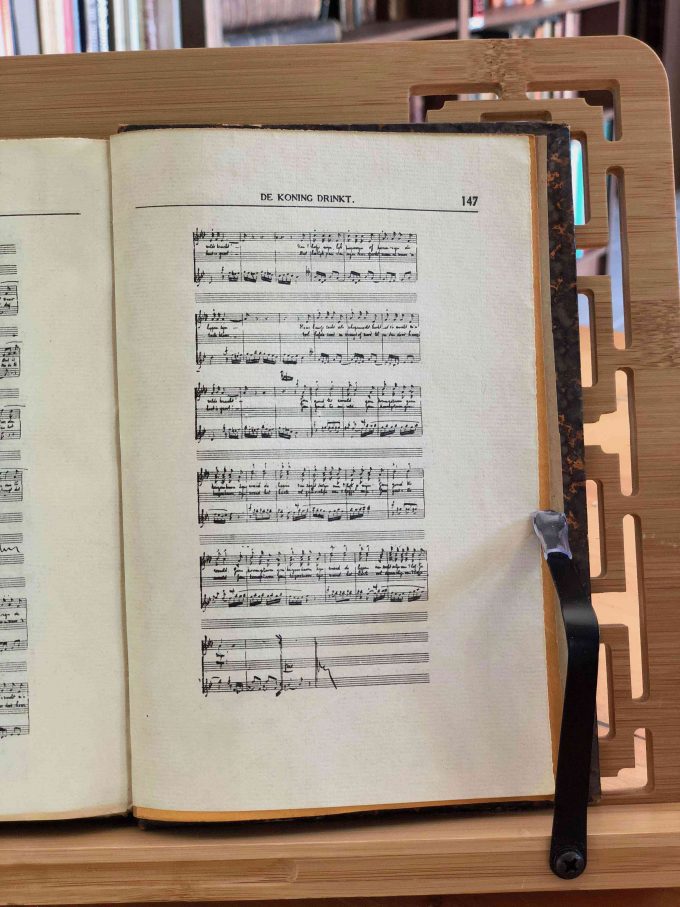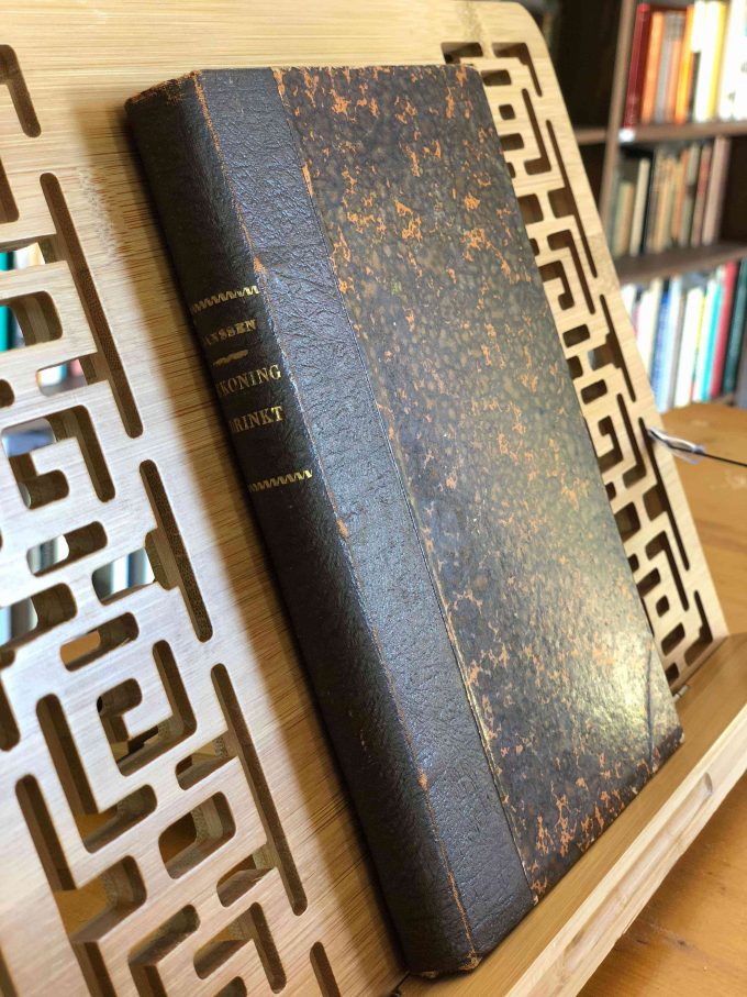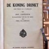 De koning drinkt. Fresco in 3 paneelen van Jos. Janssen is een unieke literaire creatie die werd gepubliceerd in 1931 in Antwerpen. Deze eerste editie is uitgevoerd in een prachtige een-kwart binding van leer en papier, wat het een luxueuze uitstraling geeft. Het werk bestaat uit drie panelen, elk een fresco die de lezer meeneemt door een rijke, verhalende reis. De titel verwijst naar een centrale gebeurtenis of figuur in het verhaal, mogelijk de koning die drinkt, wat symbool staat voor decadentie, viering, of een belangrijke gebeurtenis. De muziek van Em. Hullebroeck speelt een integrale rol in het werk, waardoor een multidimensionale ervaring ontstaat die de zintuigen van de lezer aanspreekt.