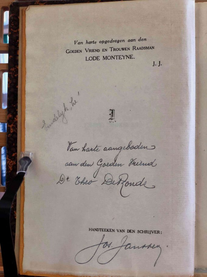 Dit exemplaar heeft een speciale associatie: het is met een hartelijke toewijding aangeboden aan Dr. Theo De Ronde, wat wijst op een persoonlijke relatie tussen de auteur en de ontvanger. De handgeschreven opmerking “Eindelijk, he!” voegt een extra laag van persoonlijkheid en context toe, wat de uitgave nog unieker maakt. De signatuur van de schrijver bevestigt de authenticiteit en verhoogt de verzamelwaarde van dit exemplaar.