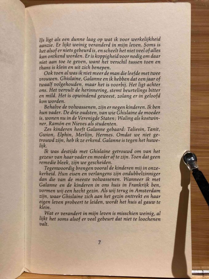 De vader worstelt met de vraag wat er verandert wanneer een kind plotseling sterft. Zijn woorden zijn doordrenkt van een gevoel van verlies en de zinloosheid van het bestaan na de tragedie. Hij beschrijft de pijn en het verdriet die hem overweldigen en reflecteert op de schijnbare onwerkelijkheid van zijn leven na het verlies. Hij merkt op: “IJs ligt als een dunne laag op wat ik voor werkelijkheid aanzie. Er lijkt weinig veranderd in mijn leven. Soms is het alsof er niets gebeurd is en scheelt het niet veel of alles kan ontkend worden.”