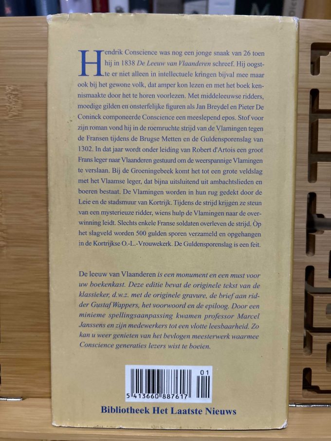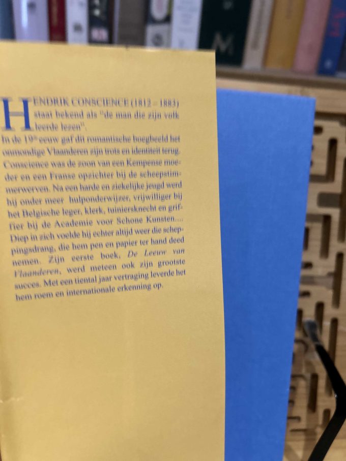 Hendrik Conscience (1812-1883) wordt vaak de “vader van de Vlaamse literatuur” genoemd vanwege zijn rol in het promoten en doen herleven van de Nederlandse taal in België, in een tijd waarin Frans de cultuur en administratie van het land domineerde. Naast De leeuw van Vlaanderen schreef Conscience vele andere romans, korte verhalen en toneelstukken, vaak gericht op historische en patriottische thema’s. Zijn werk was cruciaal voor het vestigen van een literaire traditie in het Nederlands en het bevorderen van de Vlaamse culturele identiteit. Conscience blijft een gerespecteerde figuur in de Belgische literatuur, en zijn werken worden nog steeds gelezen en bestudeerd vanwege hun historische en literaire betekenis.