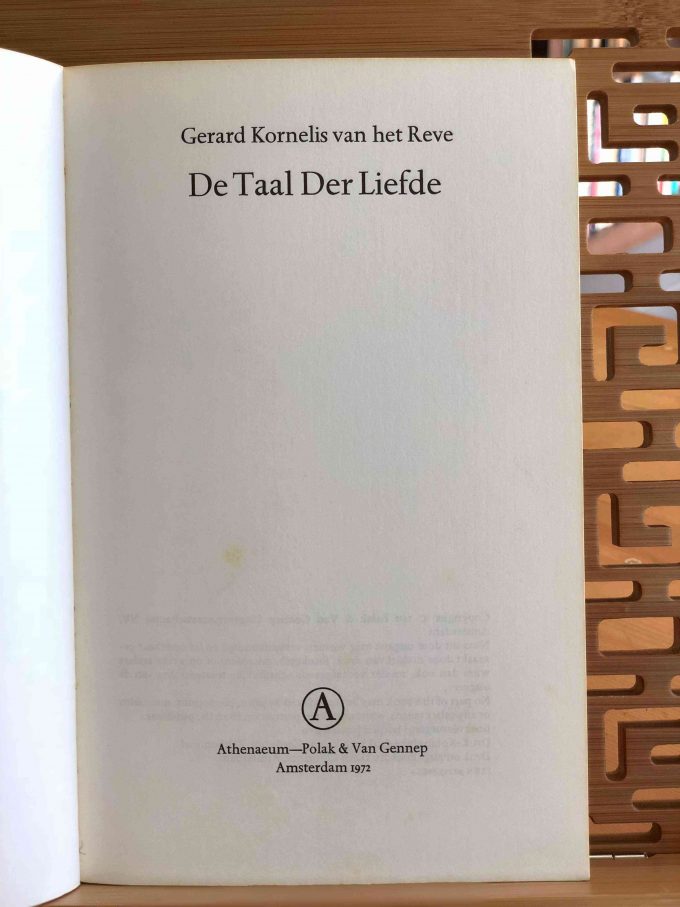“De taal der liefde” is een herdruk van Gerard Kornelis van Het Reve’s beroemde liefdesroman. Samen met “Lieve Jongens” vormt het een groot verhaal, maar het kan ook goed afzonderlijk worden gelezen. In deze roman vertelt de ik-figuur opwindende verhalen over aanbeden jongens aan zijn geliefde. Vaak zijn dit fantasieën, naast hoog-romantische ook van sadomasochistische aard. Bovendien is Reve een groot humorist, voor wie ernst nooit zonder relativering kan bestaan, en humor nooit zonder tragiek voorkomt. In deze editie zijn de “Brieven aan een kunstbroeder” (brieven aan Carmiggelt, 120 blz.) opnieuw opgenomen.