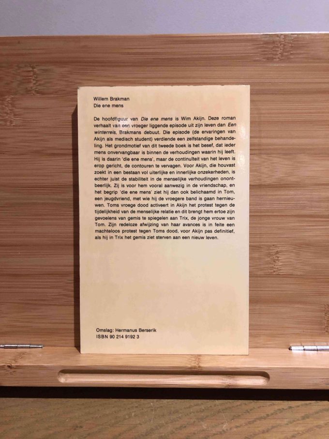 The main theme of the novel is Akijn’s passionate quest for a fixed point in human relationships and the protest against the futility of this search. The title Die ene mens refers to Akijn’s longing for a constant and meaningful relationship that can provide him with a sense of stability. Brakman explores the deep human need for connection and the disappointments that often accompany this quest.