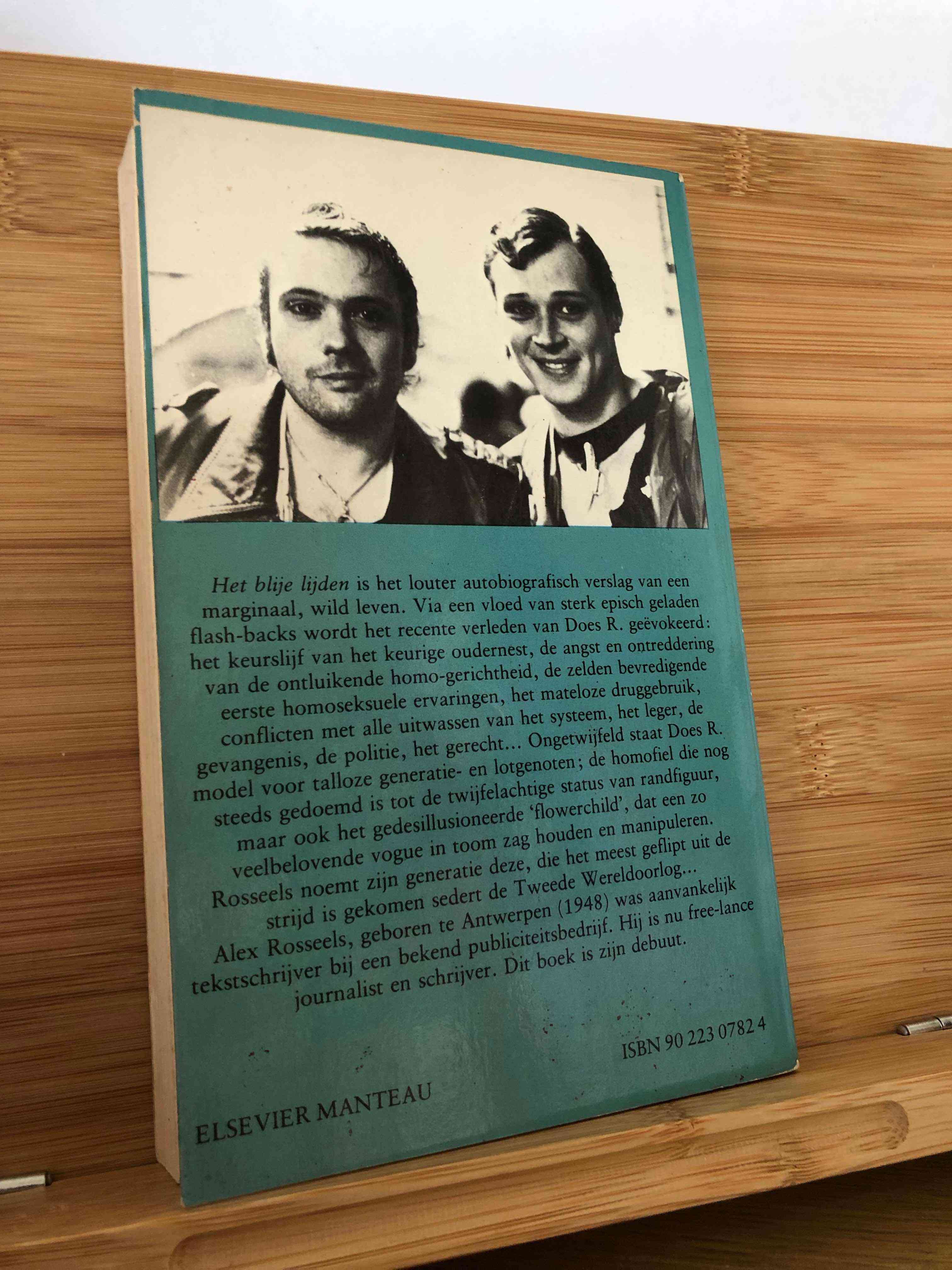 Het blije lijden (“The Joyful Suffering”) by Alex Rosseels is an autobiographical novel marking the debut of the Flemish author. The protagonist narrates his experiences with homosexuality, which manifested in his childhood. Raised in a bourgeois middle-class environment with strict codes and norms, he rebels against this rigidity and adopts a bohemian lifestyle. His life becomes increasingly marginal, and in his often fleeting homosexual relationships, he never finds true satisfaction until he meets Dennis, who becomes his constant companion.