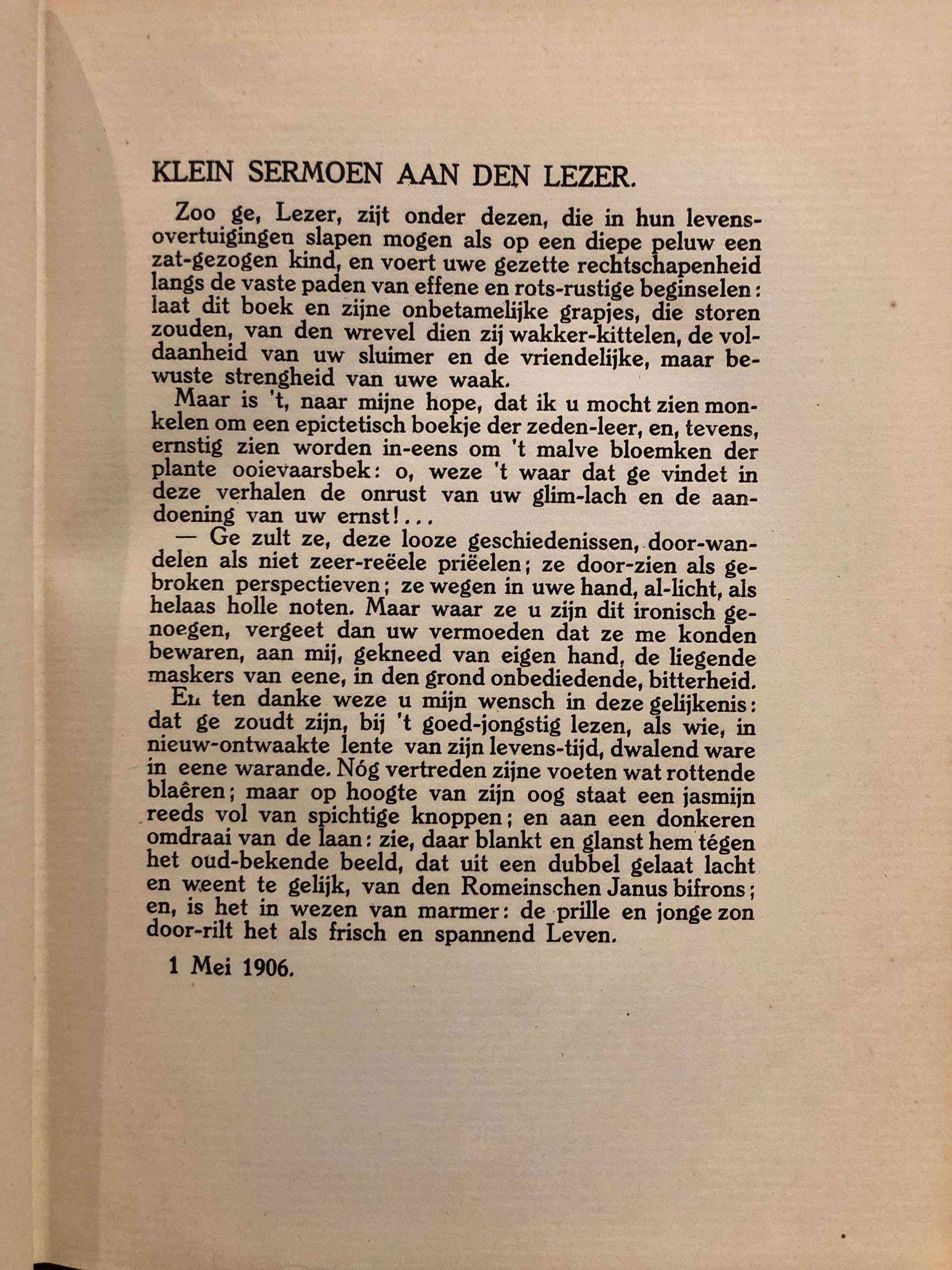 In addition to “Janus with the Double Forehead,” other notable works by van de Woestijne include “De modderen man” and “Interludia.” He had a significant impact on Flemish literature and was a central figure in the symbolist literary movement in Belgium. Van de Woestijne’s work reflects his fascination with mysticism, religion, and the human psyche and remains an important part of the Flemish literary heritage.