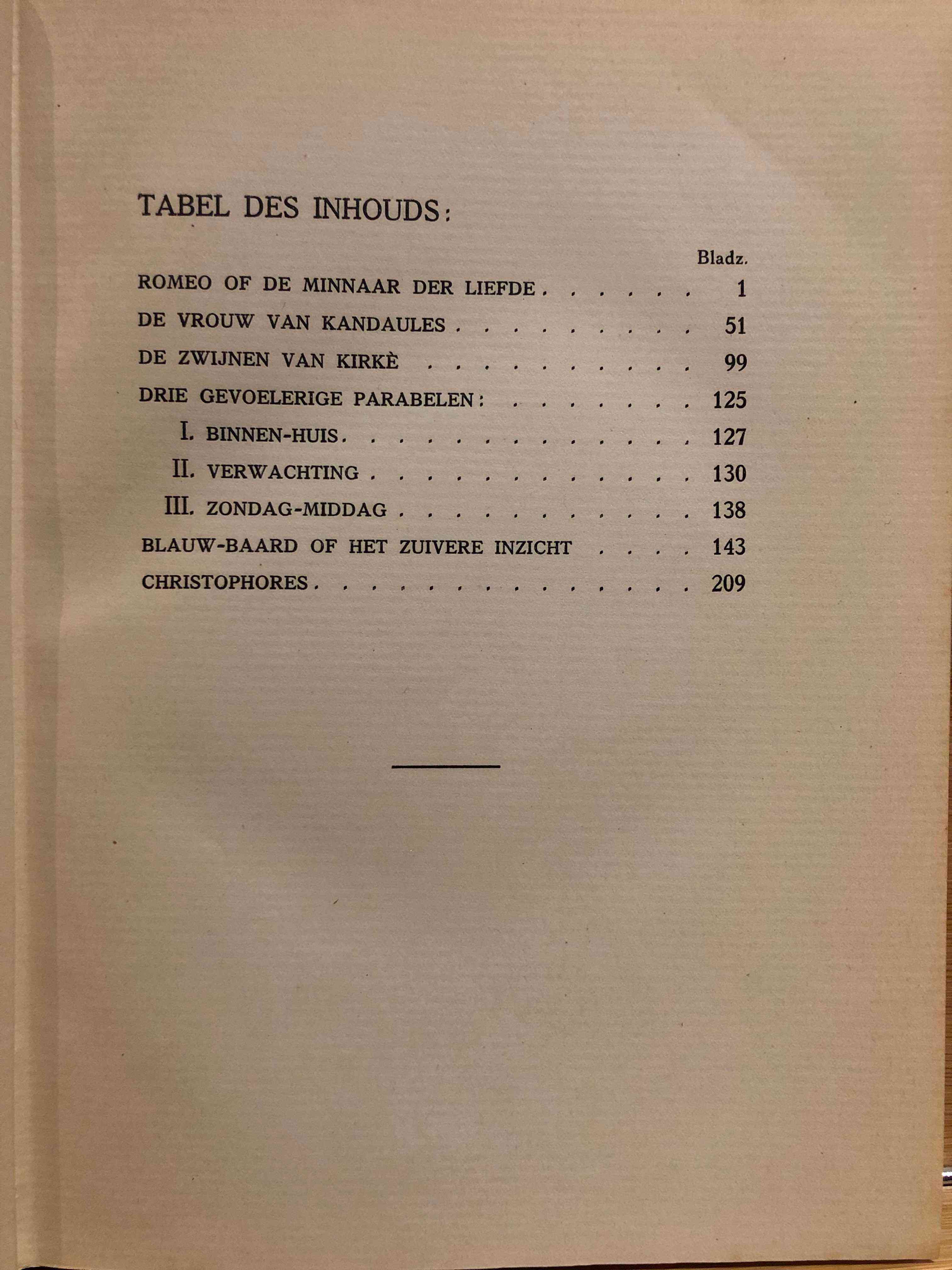 The collection includes five stories and “three sensitive parables,” the latter featuring Christ, Mary Magdalene, and Lazarus in the main roles. However, it is especially the stories “The Wife of Candaules” and “The Pigs of Circe” that fit into a symbolist and pre-Raphaelite framework. The tale of King Candaules was a favored theme from the Renaissance and is here retold by van de Woestijne with a new symbolic dimension.