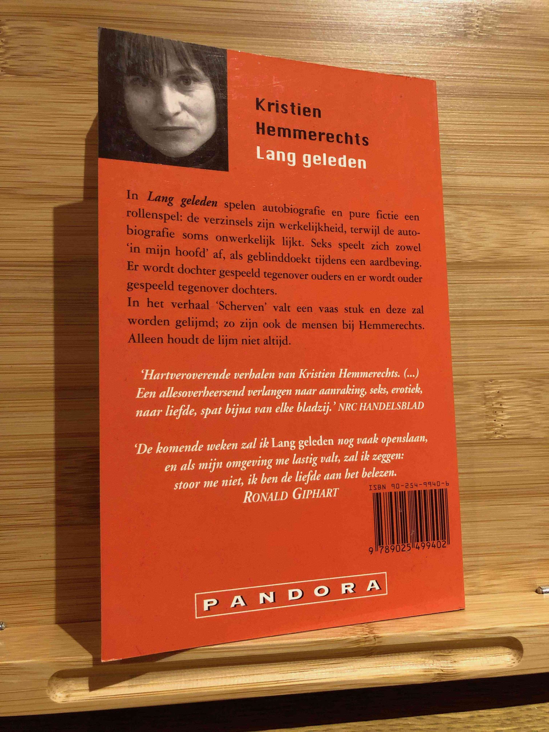 Lang geleden van Kristien Hemmerechts is een fascinerende verhalenbundel waarin autobiografie en pure fictie op een intrigerende manier verweven zijn. In deze verzameling van twaalf verhalen wordt de grens tussen werkelijkheid en verzinsels voortdurend verkend en uitgedaagd. De thema’s van seks en relaties worden op verschillende manieren en in diverse situaties onderzocht, wat resulteert in een rijke en complexe leeservaring.