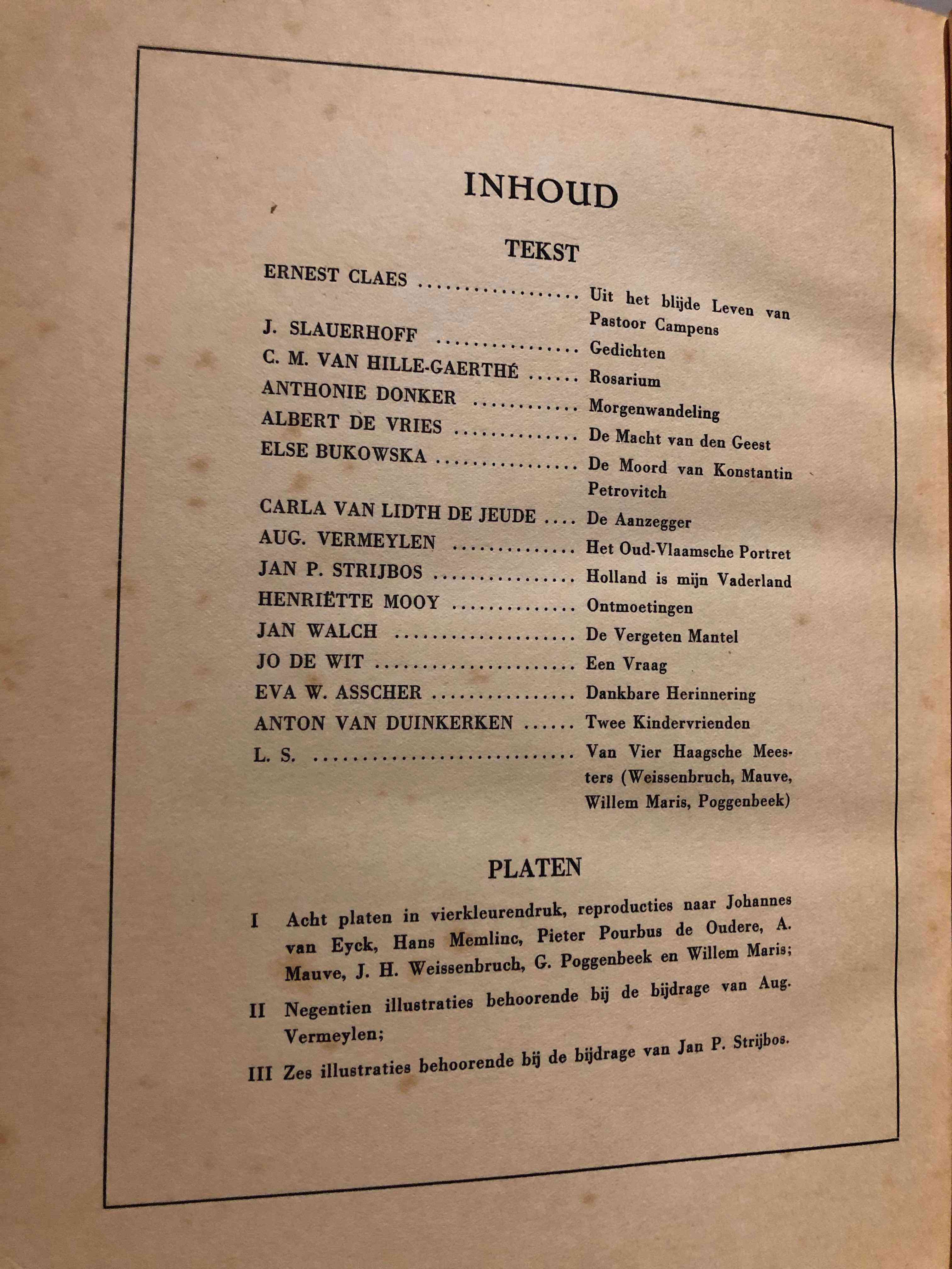 Negende winterboek van de Wereldbibliotheek, published in 1930 by Maatschappij tot Verspreiding van Goede en Goedkoope Lectuur, is a fascinating collection of stories, poems, and essays, featuring contributions from some of the most prominent writers of the time. The book is beautifully illustrated with eight autotypes in four colors, based on paintings by renowned artists such as Hans Memling, Jan Van Eyck, Pourbus the Elder, Anton Mauve, Willem Maris, J. H. Weissenbruch, and G. H. Poggenbeek. The cover design is by Agnes Pareira.