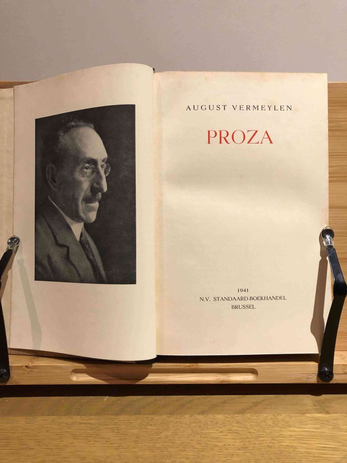 Proza van August Vermeylen, uitgegeven door Standaard-Boekhandel in Brussel in 1941, is een bundel van prozawerken van de bekende Vlaamse schrijver, literair criticus en politicus. Dit boek, bestaande uit 303 pagina’s, is de eerste editie en maakt deel uit van de serie Bibliotheek der Nederlandse Letteren. Het meet 14 cm x 22 cm en is in uitstekende staat (Fine) met een een kwartbinding (leer-stof).