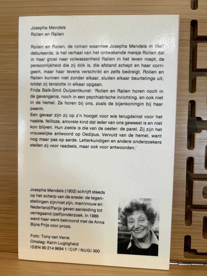 Josepha Mendels (1902-1995) was a Dutch writer whose work often focuses on themes of identity and marginalization. Mendels was forced to flee occupied France during World War II, an experience that deeply influenced her writing. Rolien en Ralien is considered one of her most important works, offering a unique perspective on childhood and self-exploration.