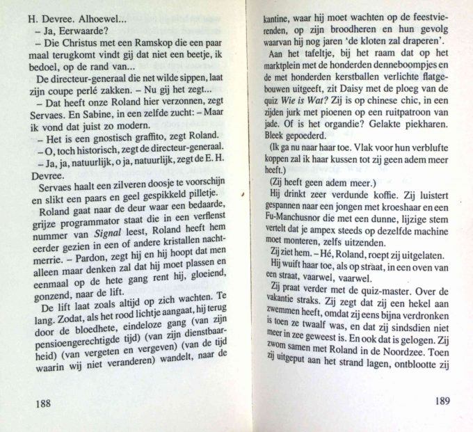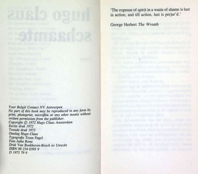 “Schaamte” by Hugo Claus tells the story of a group of radio and television makers who are preparing a passion play on a Mediterranean island. The novel reveals the darker sides of human nature, with themes such as murder, rape, and destruction described in raw detail. The reader is drawn into this intensely grim world by Claus’s baroque and whimsical writing style.