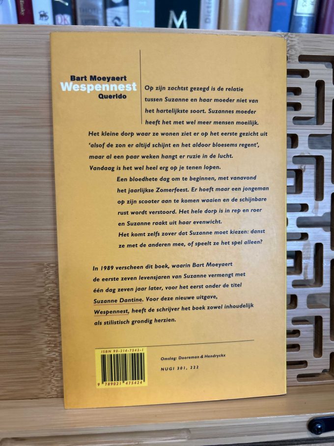 Wespennest van Bart Moeyaert is een roman die zich richt op de complexe dynamieken binnen een gezin. Het verhaal volgt Suzanne, die zich bevindt in een situatie vol spanning en onderhuidse conflicten. De roman behandelt thema’s zoals familieverhoudingen, geheimen, en de zoektocht naar persoonlijke identiteit. Moeyaert’s schrijfstijl staat bekend om zijn subtiliteit en diepgang, waardoor hij de emoties en gedachten van zijn personages op een indringende manier weet over te brengen.