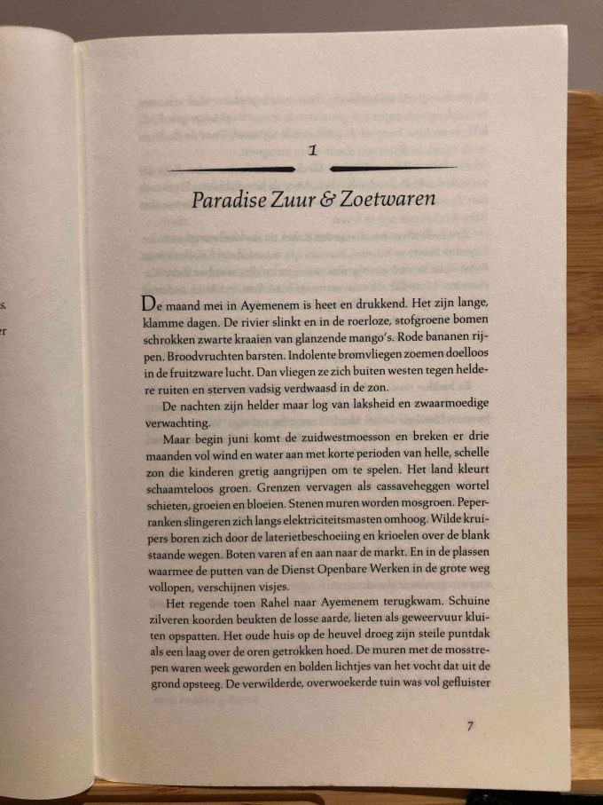 Door middel van een rijke taal en inventieve woordkunst weet Roy de lezer te boeien en mee te nemen in het complexe leven van Estha en Rahel. Ondanks de ogenschijnlijke chaos in de verhaallijn, blijkt de roman een hechte structuur te hebben. Roy weet constant het hoofdspoor te verlaten voor kleine, verhelderende excursies, maar hervindt telkens weer de juiste richting.