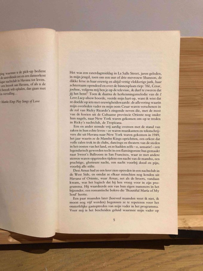 De Mambo Kings met Songs of Love biedt een beeld van het leven van de vroege Cubaanse immigranten in New York. Het boek behandelt de geschiedenis van twee Cubaanse broers – de ene een echte macho, de ander een zwaarmoedige dromer – die in 1949 als muzikanten naar New York komen. Het grootste deel speelt in de jaren vijftig, de bloeitijd van de mambo, wanneer zij triomfen vieren in het New Yorkse muziekleven. Het zijn de herinneringen aan die tijd die bovenkomen bij César (een van de twee broers) als hij later, arm en ziek, zijn leven overdenkt. Een vlechtwerk van muziek, liefde en seks (in ruime mate), heimwee en noodlot op het raakvlak van twee culturen, geschreven in een aanstekelijk, warm ritmisch proza. De auteur won er de Pulitzer Prize (1990) mee; met de verfilming is inmiddels een begin gemaakt. Goede vertaling.