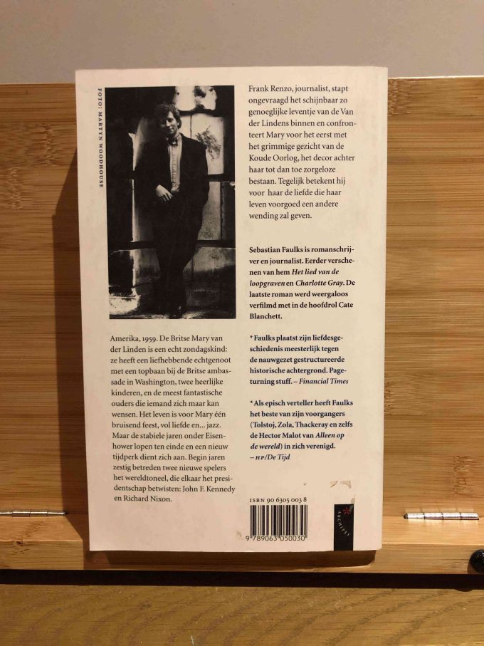 De Britse Mary van der Linden en haar man Charlie, die een hoge functie bij de Britse ambassade in Washington heeft, lijken in 1959 met hun twee kinderen een gelukkig gezin, ondanks Charlies toenemend drankgebruik. Maar als een van de gasten op een feestje bij hen, journalist Frank Renzo, contact blijft zoeken wordt Mary hartstochtelijk verliefd op hem en hij op haar. Tot haar verbazing geeft ze zich zonder schuldgevoel over aan een geheime relatie met Frank, die druk is met de verkiezingsstrijd tussen Kennedy en Nixon. Als haar man wordt overgeplaatst naar Londen, dwingen de omstandigheden haar, tegen haar en Franks gevoelens in, mee te gaan. De Britse journalist/redacteur (1953) schreef diverse romans, waarvan ‘Het lied van de loopgraven’ (1997) de beste en bekendste is. Ook in deze redelijk vertaalde roman vallen zijn onderkoelde stijl en rake beschrijving van de periode van de Koude Oorlog op. Dit is opnieuw een bijzonder boeiende roman waarin de persoonlijke situatie van Mary en Frank overtuigend wordt verbonden met een prima tijdsbeeld. Omslagfoto van een man en vrouw in omhelzing.