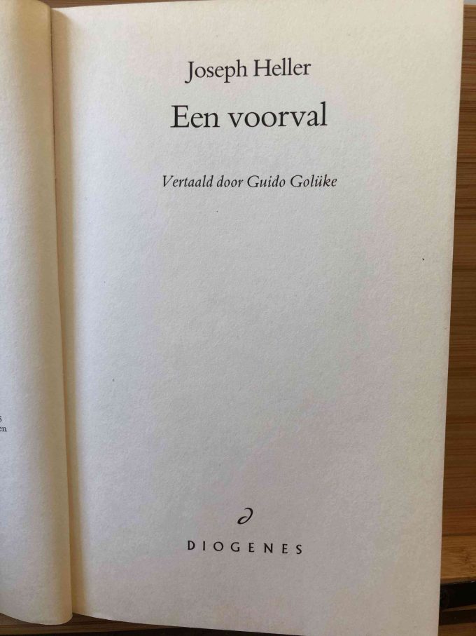 Heller, Joseph. [Translated by Golüke, Guido]. Een voorval. Baarn: Diogenes, 1995. 549 pages. 1 Volume. Third Edition. 12,7 cm. x 20,1 cm. Softcover. Perfect binding. Condition: Fine.