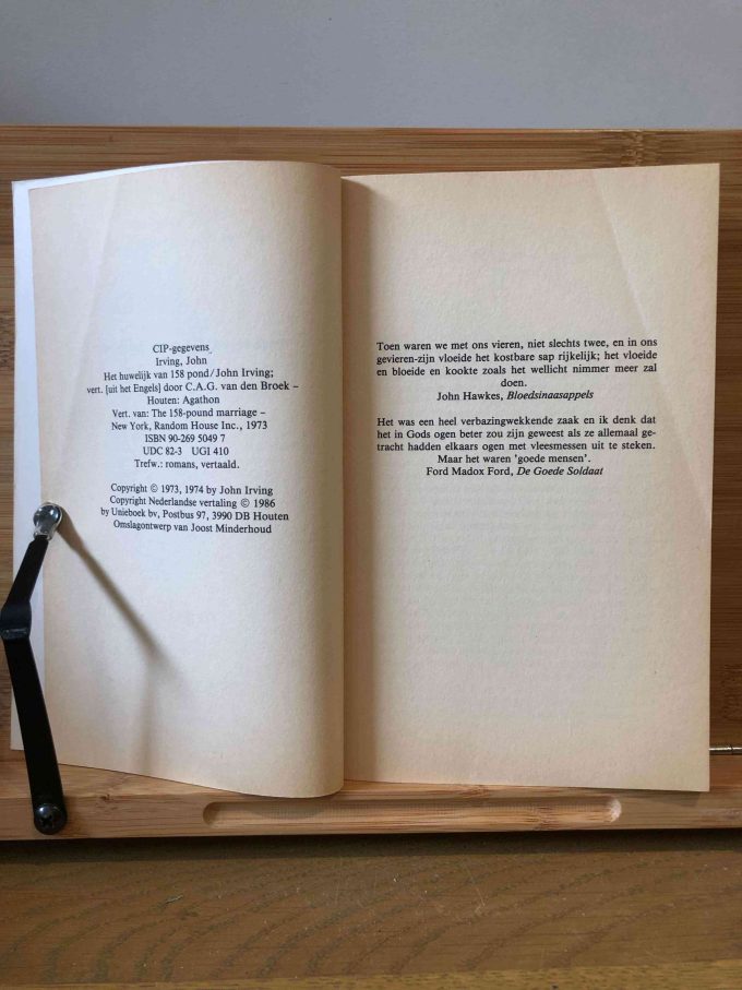 Two members of the faculty at an American university and their spouses plunge into a long-term partner-swapping experiment. Everything happens under the conditions set by the dominant Severin Winter, who, when everything goes wrong, narrowly manages to save his own marriage. The other couple loses out. John Irving (1940) has grown into a true popular writer. In this early work from 1973, various motifs from his later work are already present: wrestling, Vienna, and candid sexuality. He also explores the norms of the permissive society and makes his comments on it. Although the book will certainly find its way to readers, it is clearly weaker than his later works. Nevertheless, it is very entertaining and demonstrates tolerance, wisdom, and a sense of drama and bizarre humor.