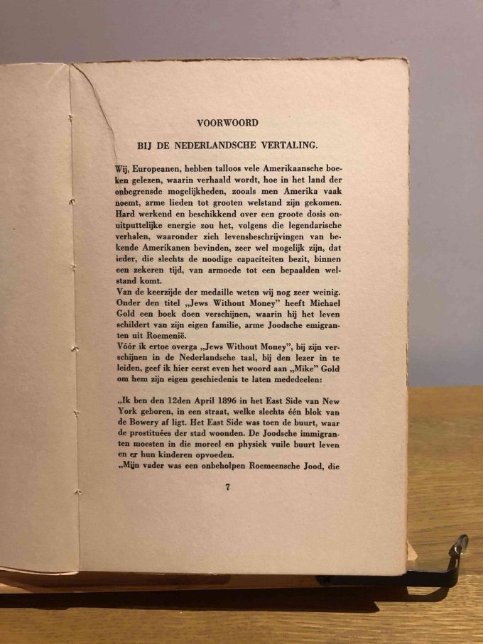 “Joden zònder geld” is de Nederlandse vertaling van “Jews Without Money” door Michael Gold, vertaald door Joseph Gompers. Deze vierde editie werd uitgegeven door Leiter-Nypels in Maastricht in 1931. Het boek omvat 304 pagina’s en meet 16,5 cm x 25,3 cm. Het is uitgevoerd als een genaaide softcover en verkeert in uitstekende staat.