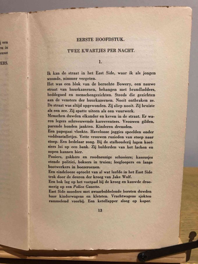 “Joden zònder geld” (Jews Without Money) is the Dutch translation of “Jews Without Money” by Michael Gold, translated by Joseph Gompers. This fourth edition was published by Leiter-Nypels in Maastricht in 1931. The book comprises 304 pages and measures 16.5 cm x 25.3 cm. It is presented as a sewn softcover and is in fine condition.