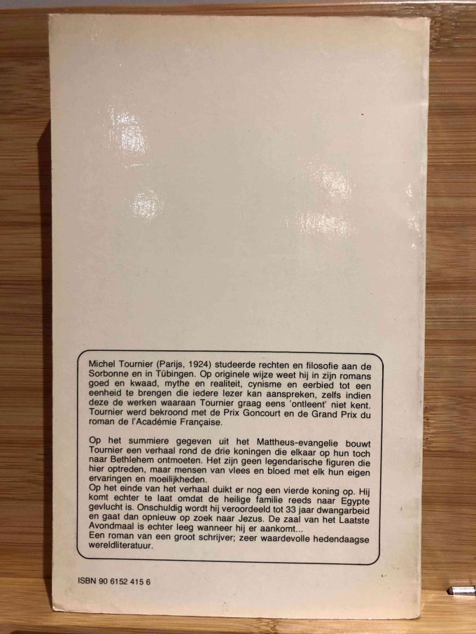 Michel Tournier (1924-2016) was een invloedrijke Franse schrijver, bekend om zijn diepzinnige en symbolische verhalen. Tournier studeerde filosofie aan de Sorbonne en begon zijn carrière als journalist. Zijn werken worden vaak gekenmerkt door het herinterpreteren van mythische en historische verhalen, waarbij hij gebruik maakt van een rijke symboliek en diepgaande karakteranalyses. “Gaspard, Melchior en Balthazar” is een voorbeeld van zijn meesterlijke vertelkunde, waarin hij het traditionele verhaal van de drie koningen nieuw leven inblaast door het te verweven met thema’s van zoektocht, verlossing en het menselijk lot. Tournier won verschillende prestigieuze literaire prijzen, waaronder de Prix Goncourt, en zijn werk blijft wereldwijd gewaardeerd.