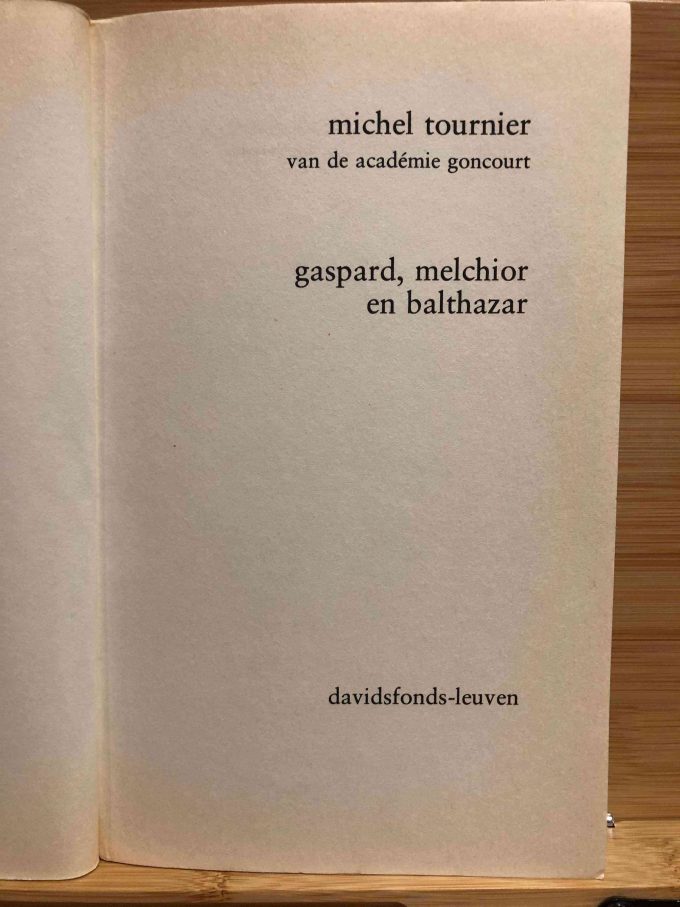 Tournier, Michel. Gaspard, Melchior en Balthazar. Leuven: Davidsfonds, 1983. 271 pages. 1 Volume. [?First Edition]. 13 cm. x 21 cm. Softcover. Perfect binding. Condition: Fine.