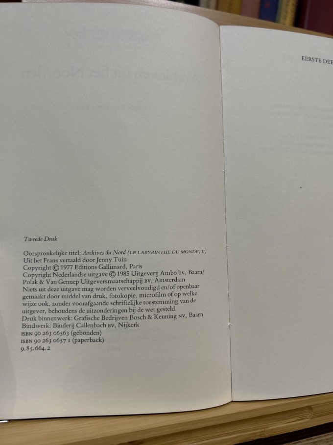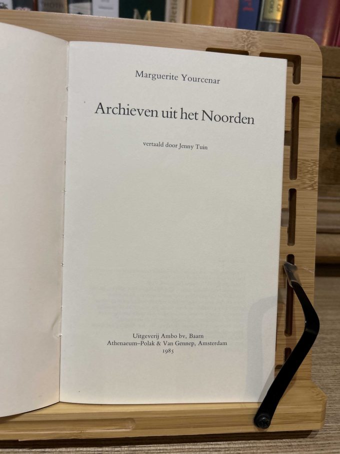 Yourcenar, Marguerite. [Translated by Tuin, Jenny]. Archieven uit het Noorden. (Original Title: Archives du Nord). Baarn: Ambo, 1985. 303 pages. 1 Volume. Second Edition. 20 cm. x 12,5 cm. Softcover. Perfect binding. Condition: Fine.