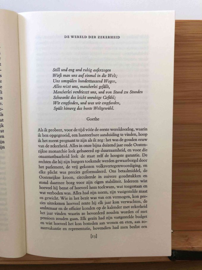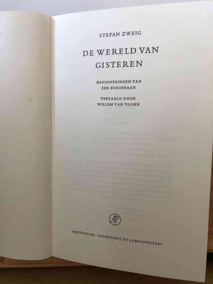 Stefan Zweig’s “De wereld van gisteren: Herinneringen van een Europeaan” is een autobiografie die een indrukwekkend beeld biedt van het oude Europa waarmee de auteur, als geassimileerde jood, geëngageerd schrijver en humanist, zich sterk verbonden voelde. Op 22 februari 1942 pleegde de Oostenrijkse schrijver Stefan Zweig samen met zijn vrouw zelfmoord in Brazilië. Als emigrant op de vlucht voor het naziregime had hij daar kort voor zijn dood zijn herinneringen opgetekend aan een wereld die naar hij vreesde op het punt stond te verdwijnen.