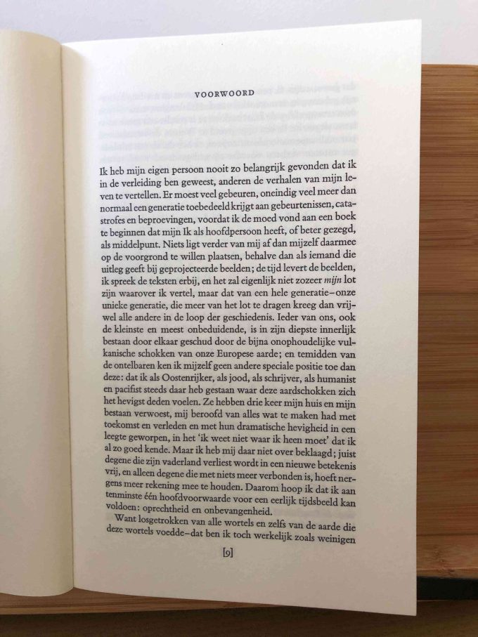In his foreword, Stefan Zweig (1881-1942) writes that as an Austrian, a Jew, and a pacifist, he has continually felt the seismic shocks of his European earth. He states that he was thrown into dramatic emptiness three times, which, in his view, gives him the main prerequisites for an honest portrayal of the times: sincerity and openness. This atmosphere pervades the book entirely. Zweig masterfully captures a picture of Europe, particularly Austria, in his time (the early decades of the 20th century). The book concludes with an extensive index of people and is considered a classic masterpiece in the memoir genre in a beautiful translation.