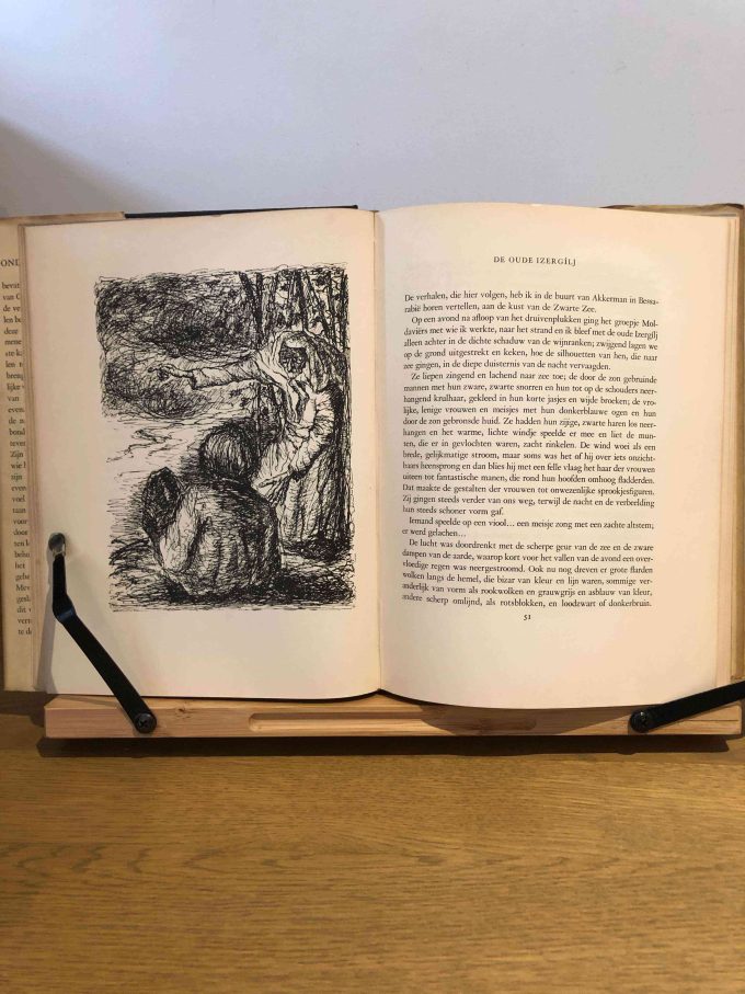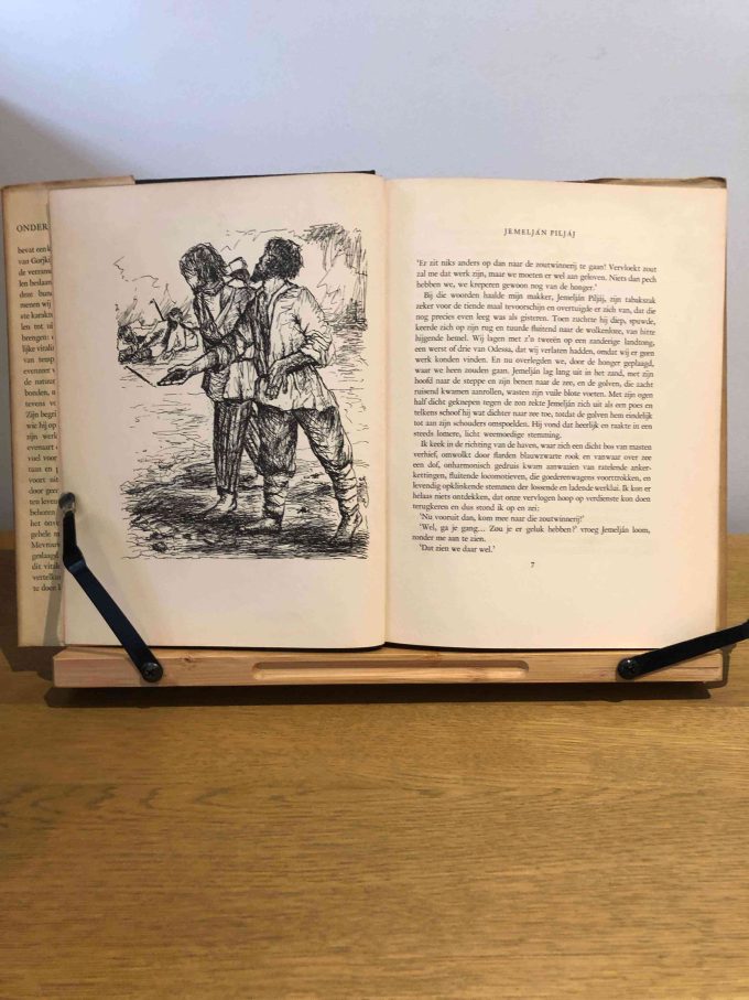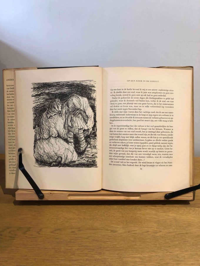 Onder de levenden. Verhalen (Among the Living. Stories) is the first Dutch language edition of Gorky’s stories, published in 1953 by Van Lochum Slaterus in Arnhem. This collection features a selection from Gorky’s extensive body of short stories, spanning many volumes in the original publications. The title “Onder de levenden” was chosen to best express the main characteristic of these stories: a vibrant natural vitality. This vitality is not only of temperament but also of mind and heart. Gorky has a deep connection with nature and an open heart for his fellow human beings. His understanding and warm feelings for the people he encounters in his travels and work are spontaneous and positive. These stories are part of the inalienable heritage of all humanity. The pen drawings by Mrs. El. de Roode succeed in fully capturing the vital character of Gorky’s storytelling.