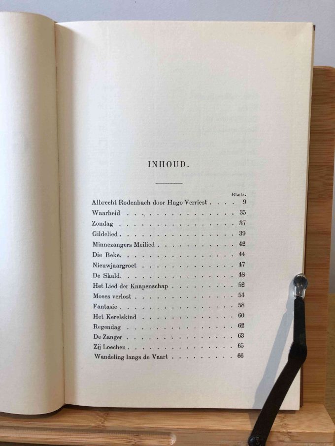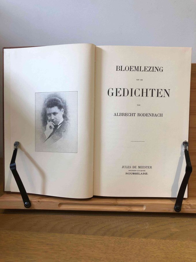 “Bloemlezing uit de gedichten van Albrecht Rodenbach” (Anthology of the Poems of Albrecht Rodenbach) is a collection presenting a selection of Albrecht Rodenbach’s poems. This limited edition was published by Jules De Meester in Roeselare in 1979. The book comprises 109 pages and measures 16 cm x 24.5 cm. It is presented as a hardcover and is in fine plus condition.