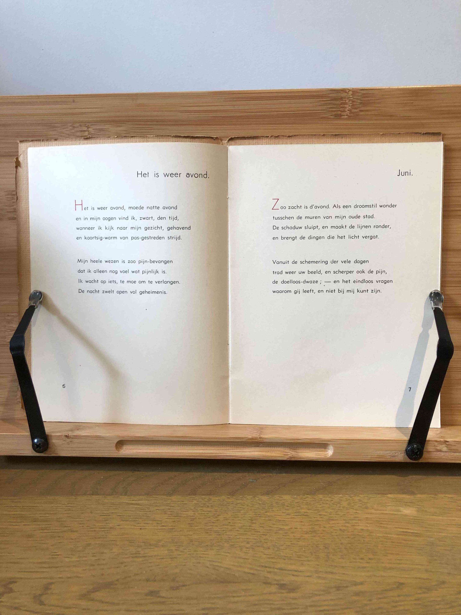 De lichte last (The Light Burden) is a collection of poems by Dora Mahy, published in April 1941. This collection features a drawing by Oscar Bonnevalle. The poems in this collection reflect on the themes of lightness and heaviness, with Mahy’s poetic voice exploring the delicate balance between these two extremes. Her work is characterized by a sensitivity to detail and a depth of emotion that invites readers to introspection and contemplation. This first edition is particularly valuable due to its limited print run and the personal signature of the poet.