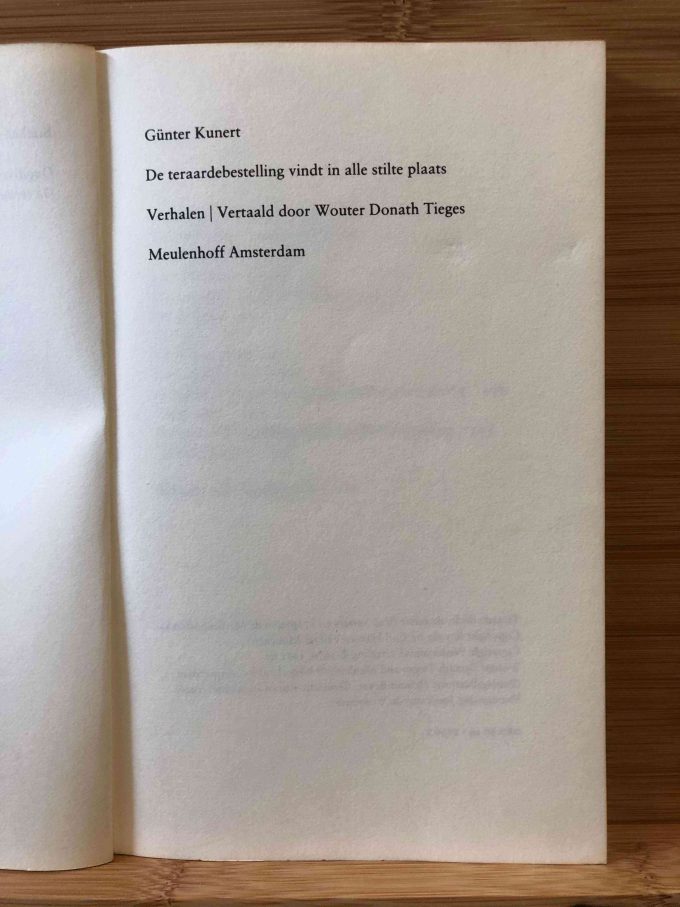A reprint of the Dutch translation first published in 1970. This collection features early prose by Kunert, who was then considered one of the emerging literary talents of the GDR. Since then, he has become one of the most renowned and accomplished writers and poets in the German-speaking world but had to exchange East Germany for the Federal Republic. The importance of Kunert, also as a prose writer, is more than sufficiently demonstrated in this collection. It also becomes clear that he possesses a wide range of literary capabilities. The German past also plays a significant role in this work. Well translated by Wouter D. Tieges.