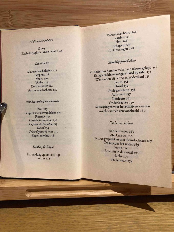 Animals play a symbolic role in Kopland’s poetry, with horses, for example, often referring to a paradisiacal state. The wide and quiet rural landscapes provide the poet with a sense of security and happiness, especially when these experiences are shared with a loved one. Kopland’s careful use of language and refined versification allow him to maintain the mystery and enigma of poetry even in seemingly ordinary language.