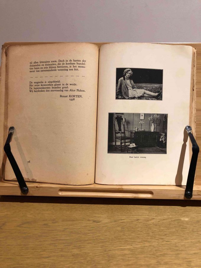 Alice Nahon (Antwerp, August 16, 1896 – Antwerp, May 21, 1933) was a Belgian poet and an icon of Flemish literature. Known for the purity of her expression, her work achieved a notable unity of form and content, with a cosmic-religious undertone. Nahon suffered from chronic bronchitis and depression, spending several years in various sanatoria. Nevertheless, she published successful poetry collections such as Vondelingskens (1920) and Op zachte vooizekens(1921), which brought her enormous popularity. In Schaduw (1928), she resisted her sweetly sentimental image and the criticism from figures such as Paul van Ostaijen.
