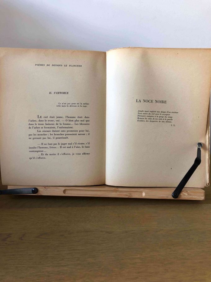 In “Poèmes de dessous le plancher”, this experience is crystallized in a number of texts in verse and prose. In the awakened consciousness, the unprecedented event has left traces at the level of some of the attitudes that man can take in the face of his contradictions and problems.