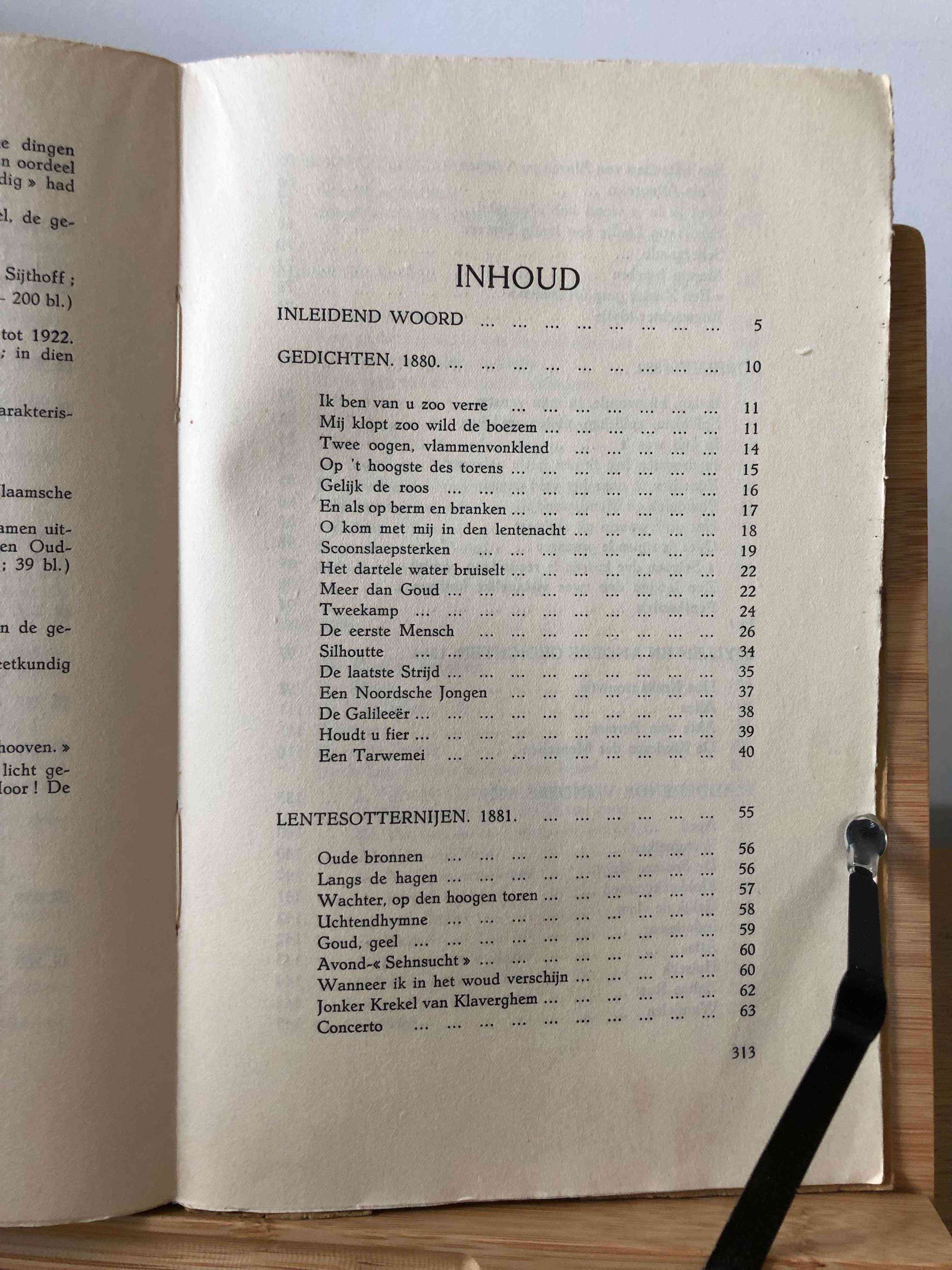Pol de Mont: bloemlezing uit zijn poëzie, samengesteld en toegelicht door Dr. George Meir, is een uitgebreide collectie van de werken van Pol de Mont, een invloedrijke Vlaamse schrijver en dichter. Deze eerste editie, gedrukt door D. Walleyn in Brugge en uitgegeven in 1932 door De Sikkel / De Spieghel in Antwerpen en Amsterdam, omvat 317 pagina’s en is uitgevoerd in genaaid softcover formaat.