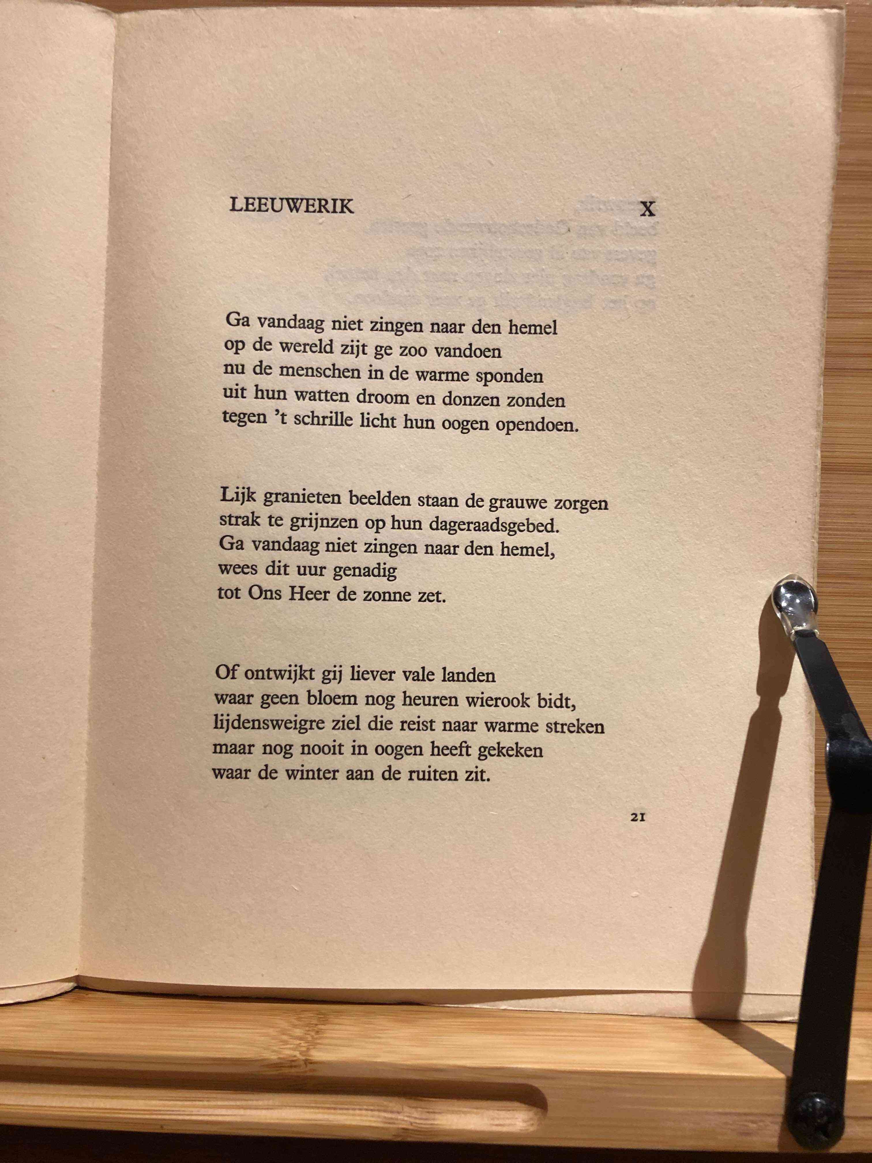 Alice Nahon (Antwerp, August 16, 1896 – Antwerp, May 21, 1933) was a Belgian poet. She is perhaps best known in Flanders for the lines from her poem Avondliedeke III: “‘t is goed in ‘t eigen hert te kijken, nog even vóór het slapengaan, of ik van dageraad tot avond, geen enkel hert heb zeer gedaan, …”