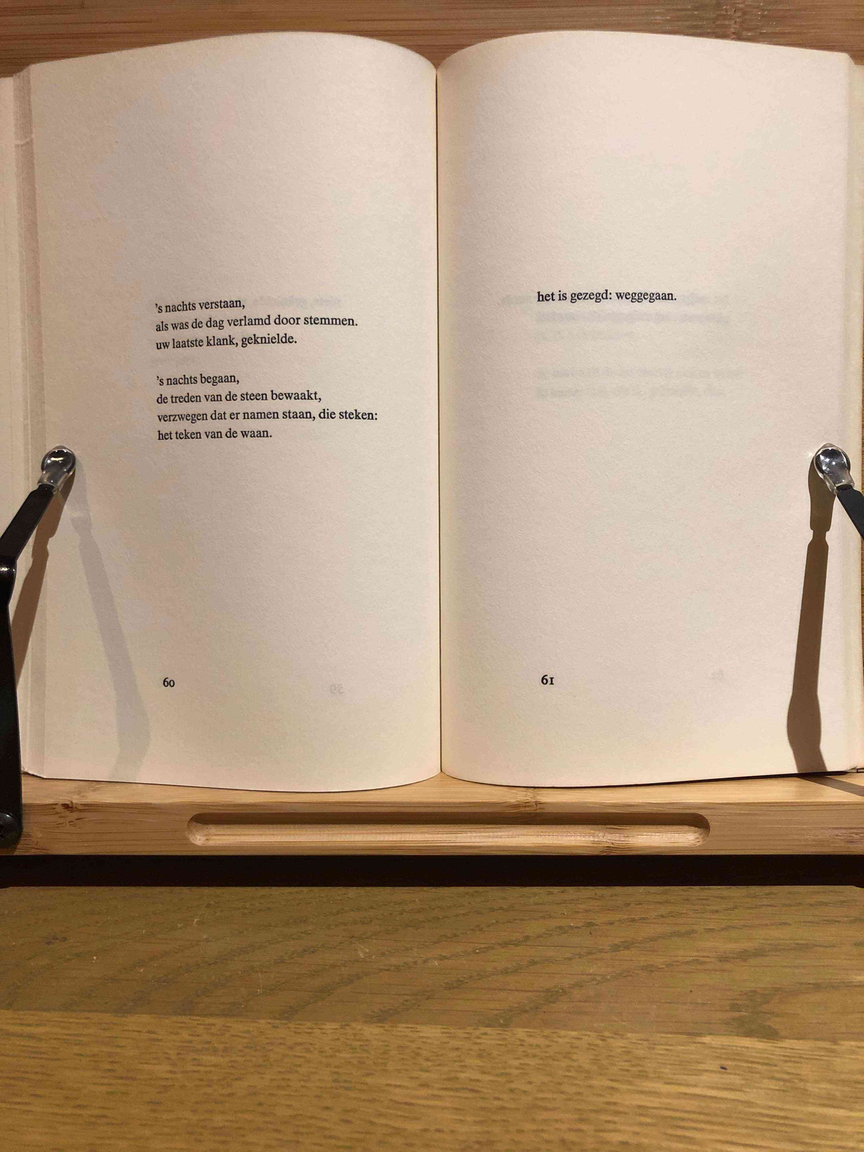 The collection Tucht is a remarkable assemblage of ninety, mostly very brief notes that initially evoke the expressionist language of the 1920s. The poems contain reminiscences of Marsman and, in terms of atmosphere, also of Bordewijk. The notes vary from just a few words to a few lines, with heavy sound assonances, particularly frequent “aa” and “a” sounds, predominating. The soldierly and military themes dominate strongly, with references to the army, commands, order, and angular shapes like squares.
