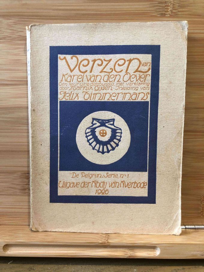 Van den Oever, Karel. Verzen. Een keur uit twaalf dichtbundels, met verklaring door Marnix Gysen, voorrede van Felix Timmermans. Averbode: Abdij van Averbode, 1926. 129 pages. 1 Volume. Series: De Pelgrim. [First Edition]. 14,2 cm. x 19,2 cm. Softcover. Sewn binding. Condition: Fine.